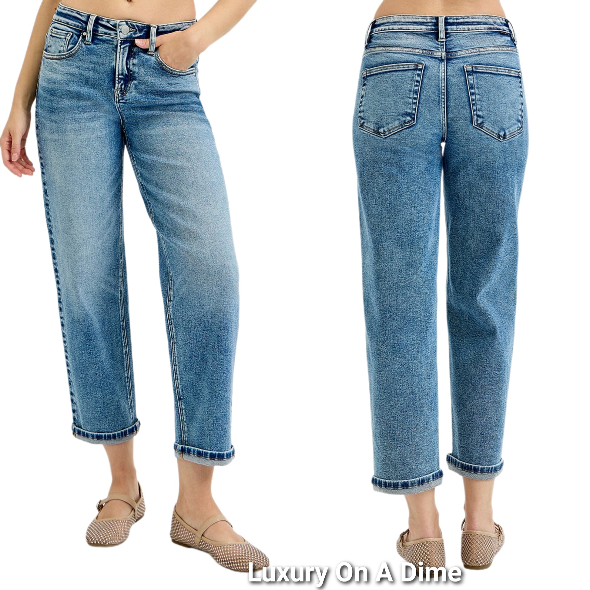 RISEN High-Rise Boyfriend Fit Jeans Ankle Cuffed Straight Leg Cropped Denim Pants Plus Size Available