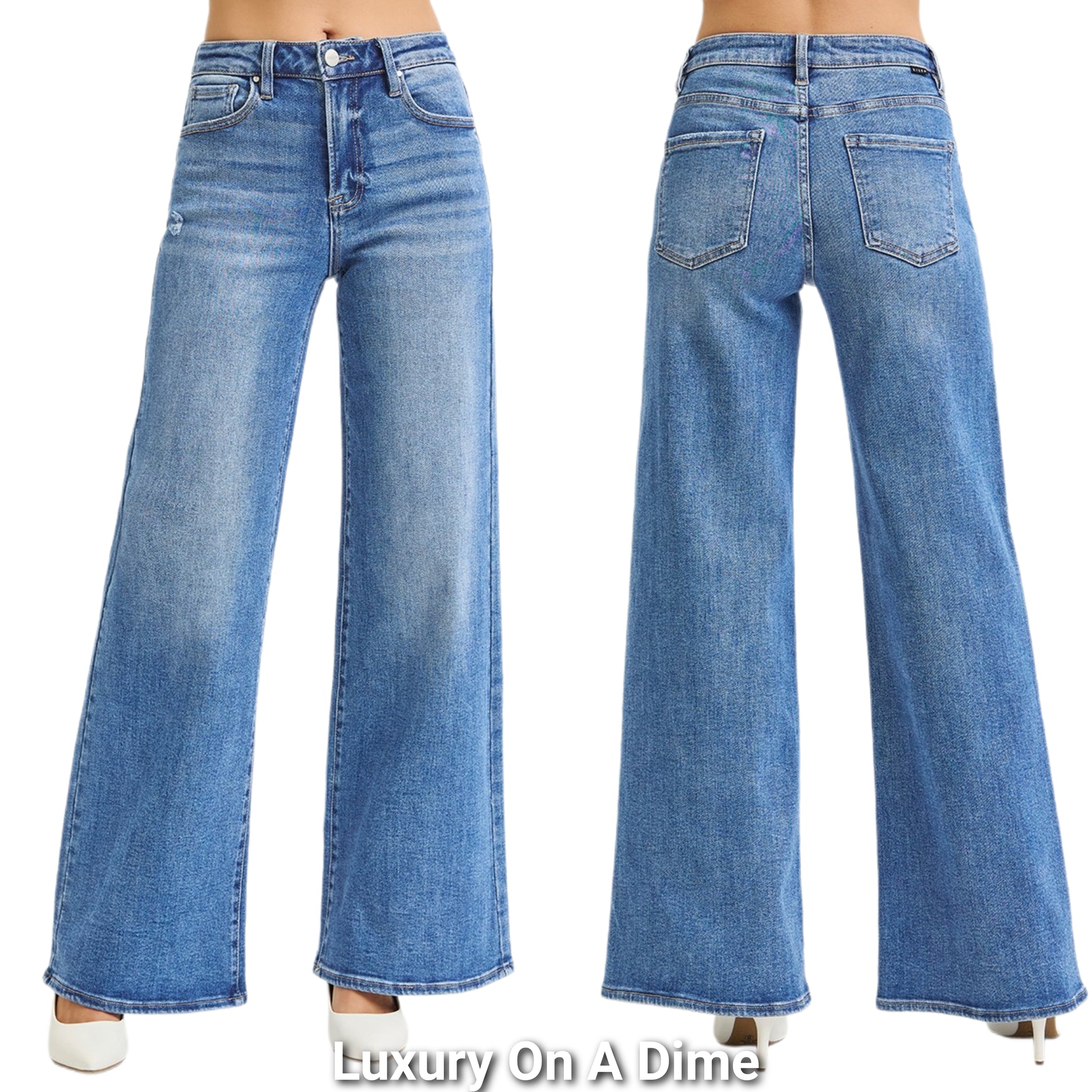 RISEN High-Rise Waist Pants Relaxed Boyfriend Fit Baggy Wide Leg Denim Jeans Plus Size Available