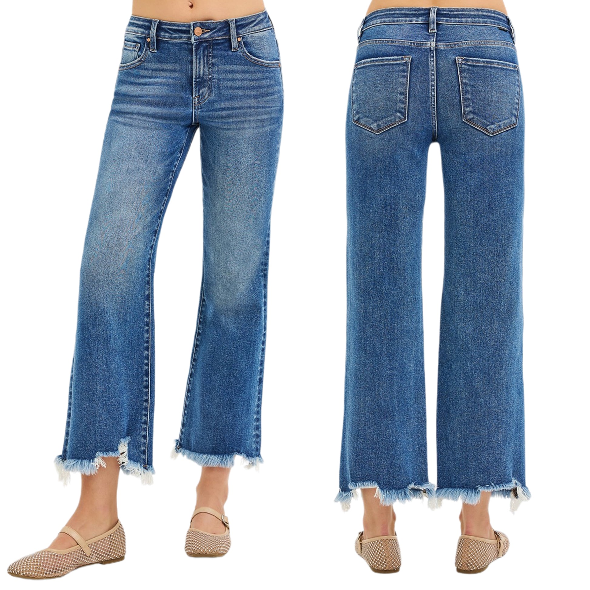 RISEN Mid-Rise Slim Fit Straight Leg Ankle Cropped Raw Frayed Hem Denim Pants Plus Size Available