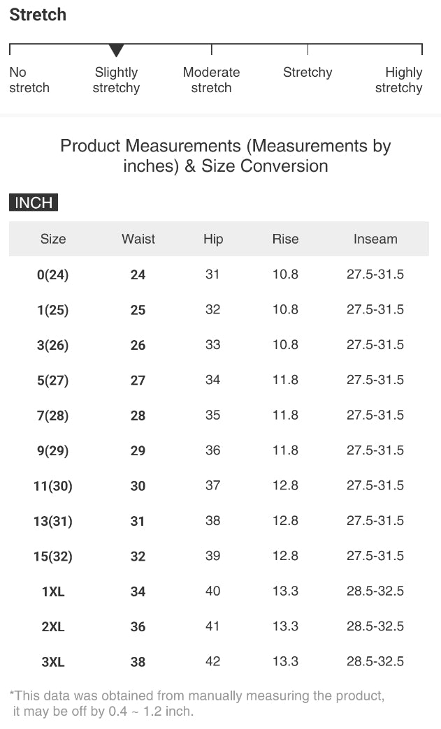 | Size | Waist | Hip | Rise | Inseam |