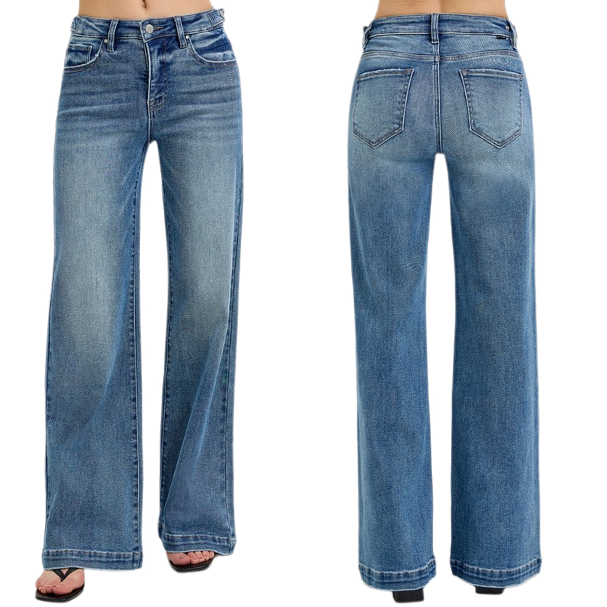 RISEN Tummy Control High-Rise Denim Adjustable Waist Pants Wide Leg Jeans