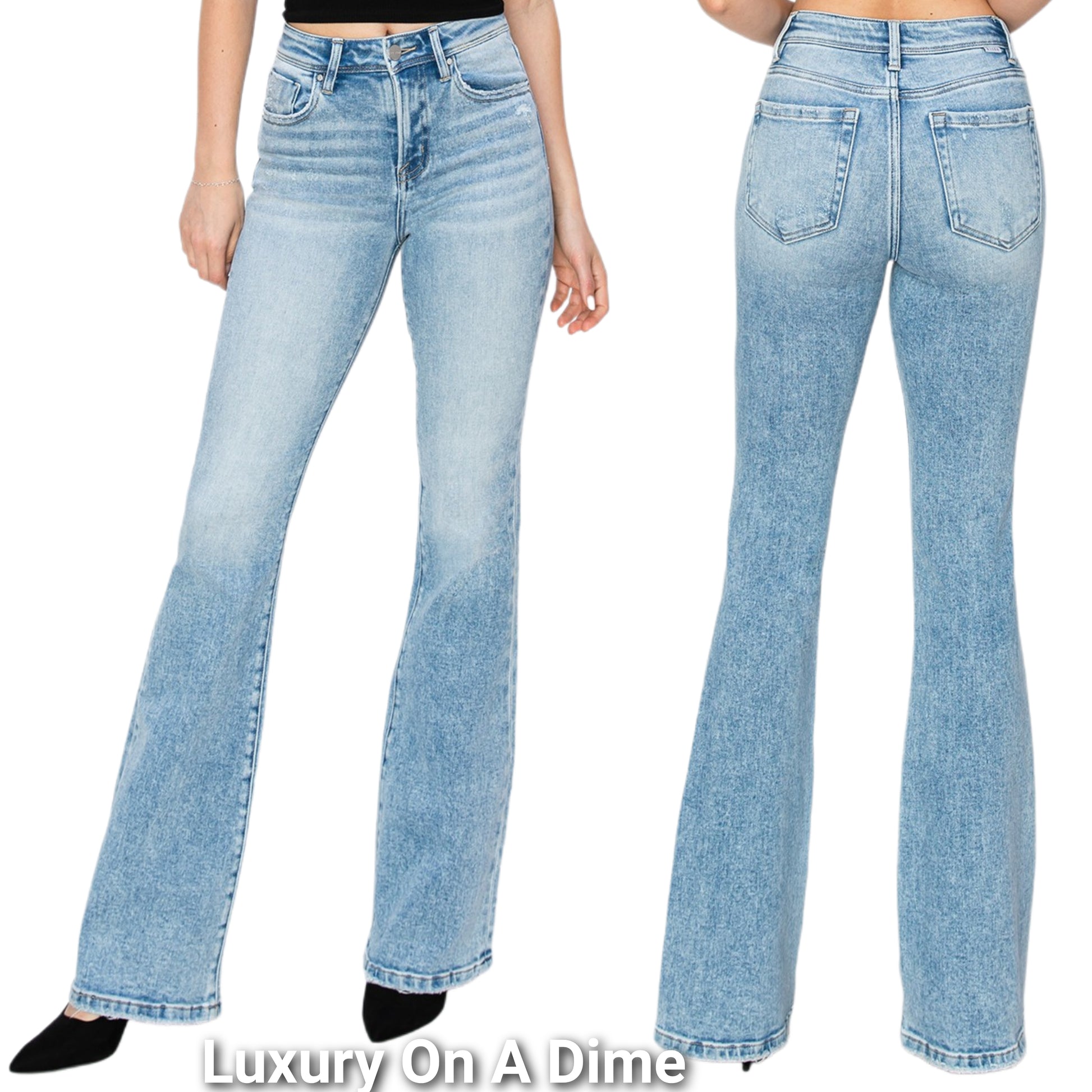 RISEN Retro High-Rise Waist Classic Bootcut Slim Fit Jeans Stone Wash Denim Pants