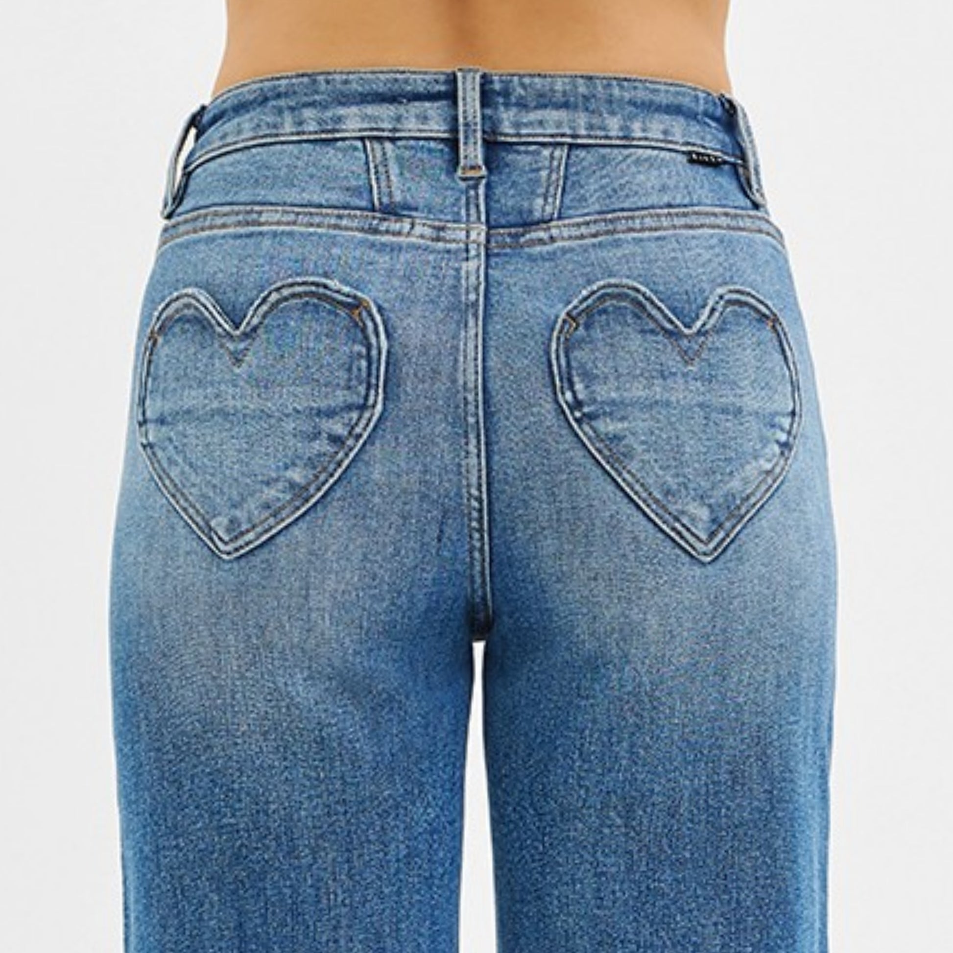 Equipped with functional heart shaped back pockets adds a romantic twist.