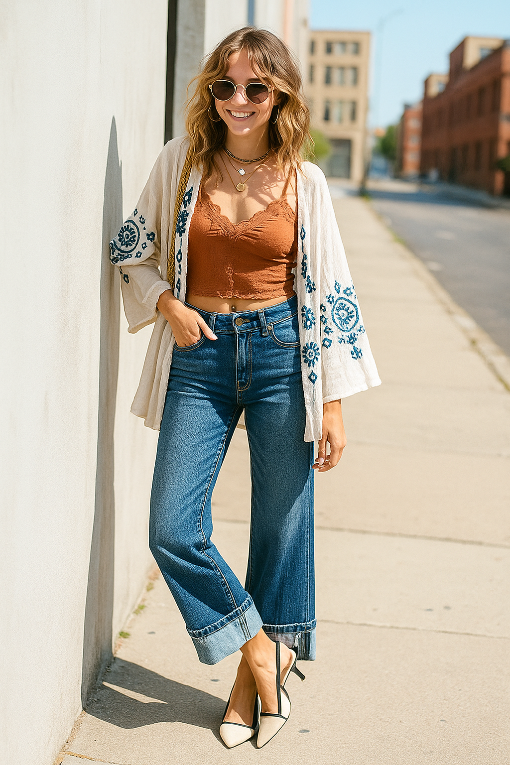 A polished mid-rise that typically sits at or just below the natural waist, offering an elongated silhouette thats flattering on a wide range of body types.