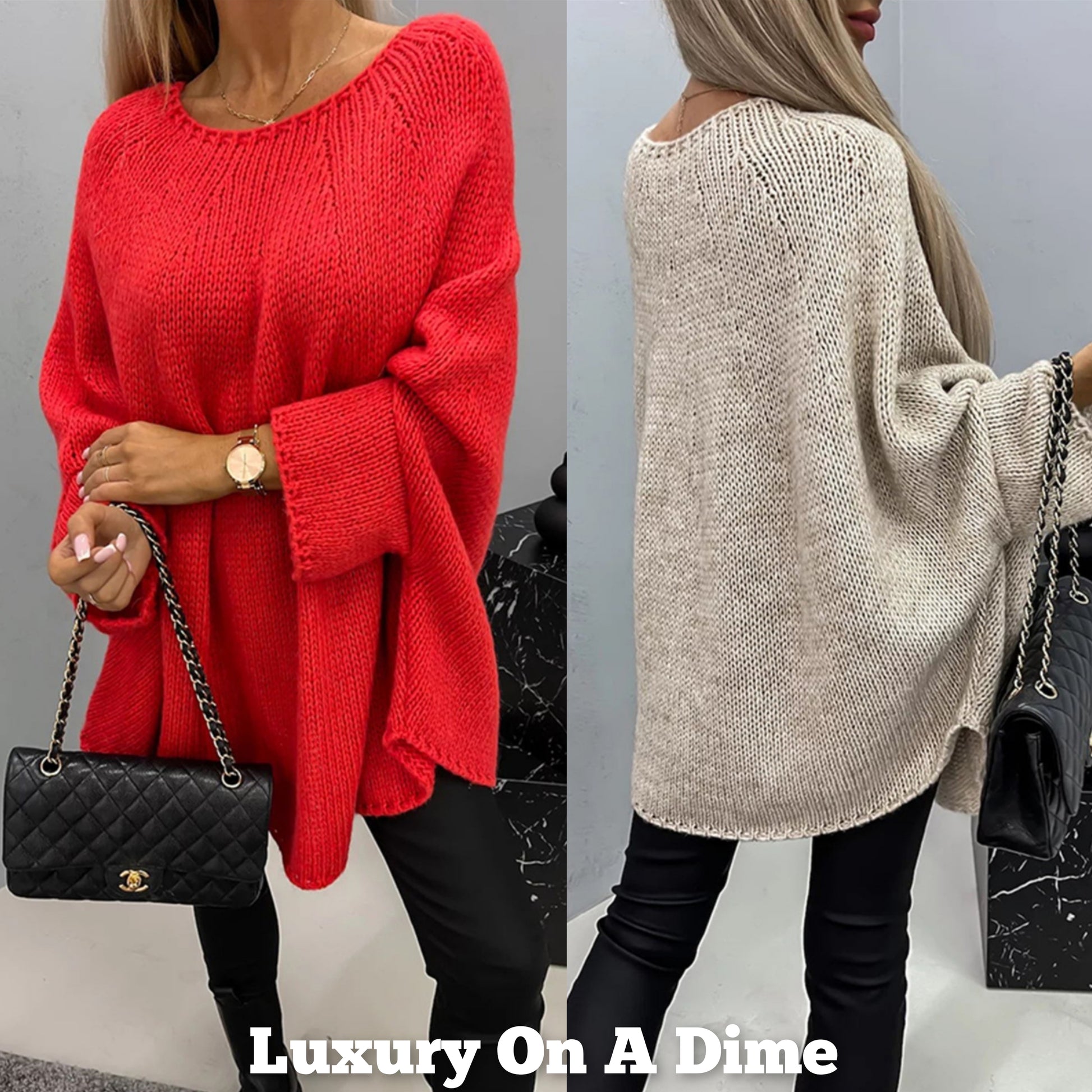 Oversized Knit Top Batwing Baggy Long Pullover Sweater Poncho Shirt Round Neck