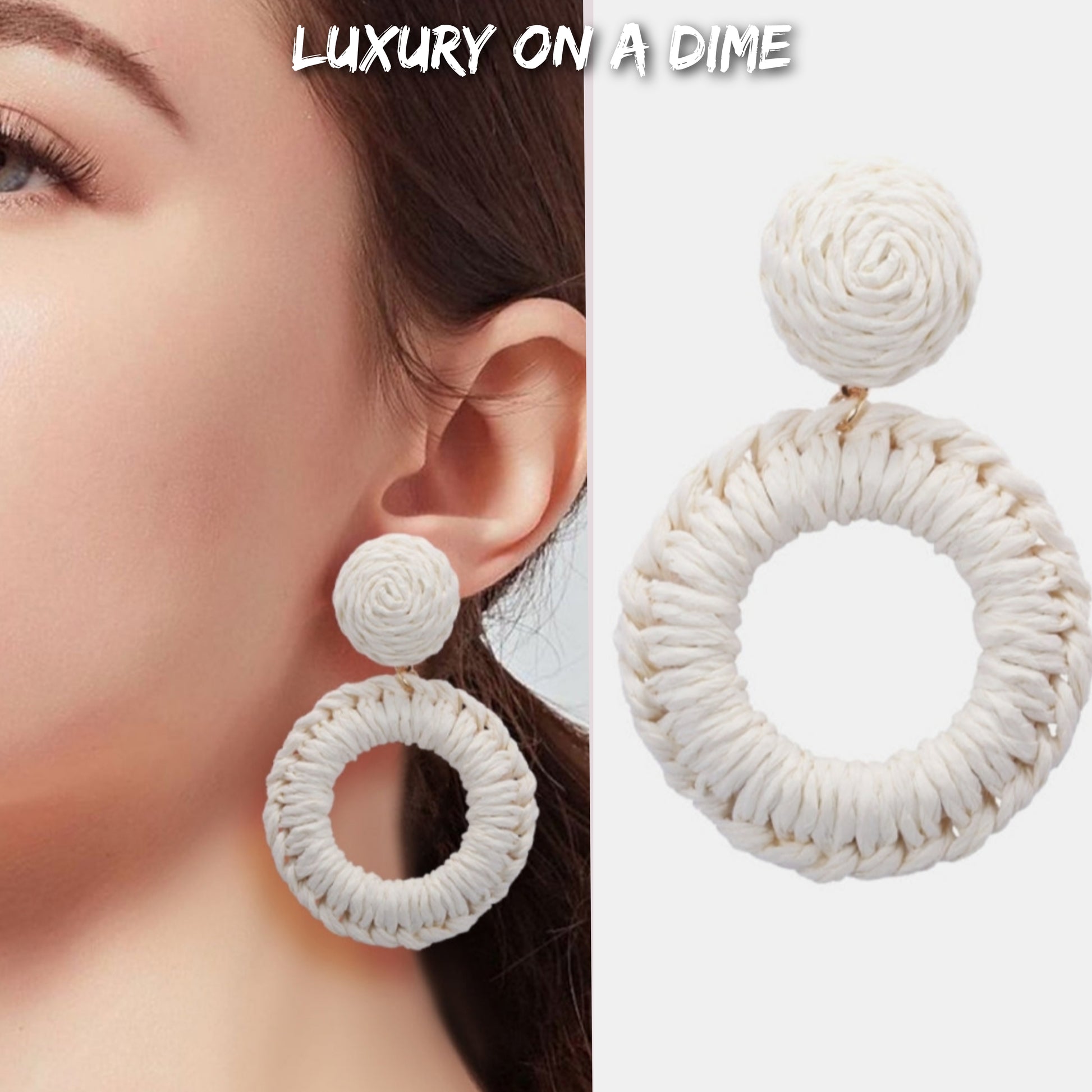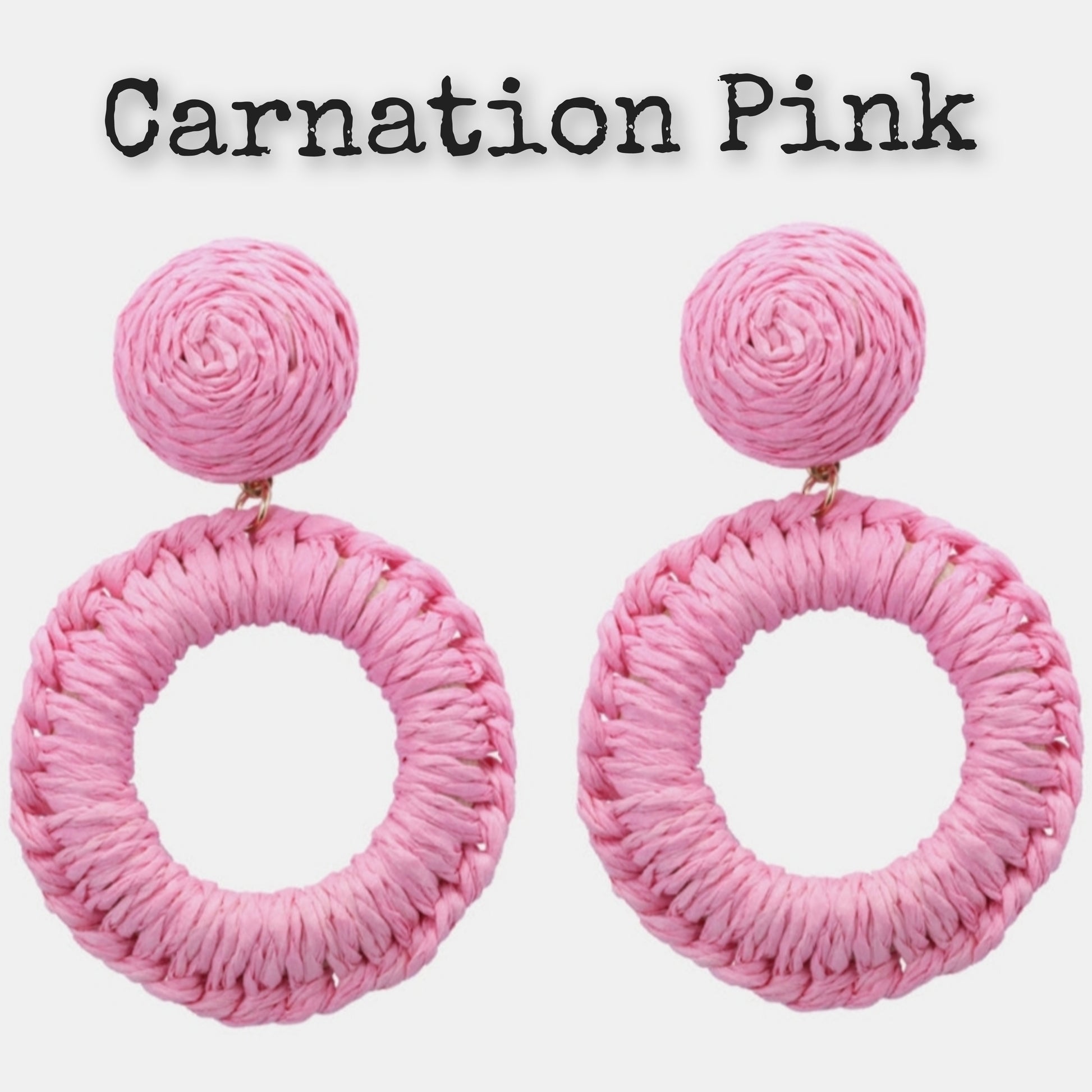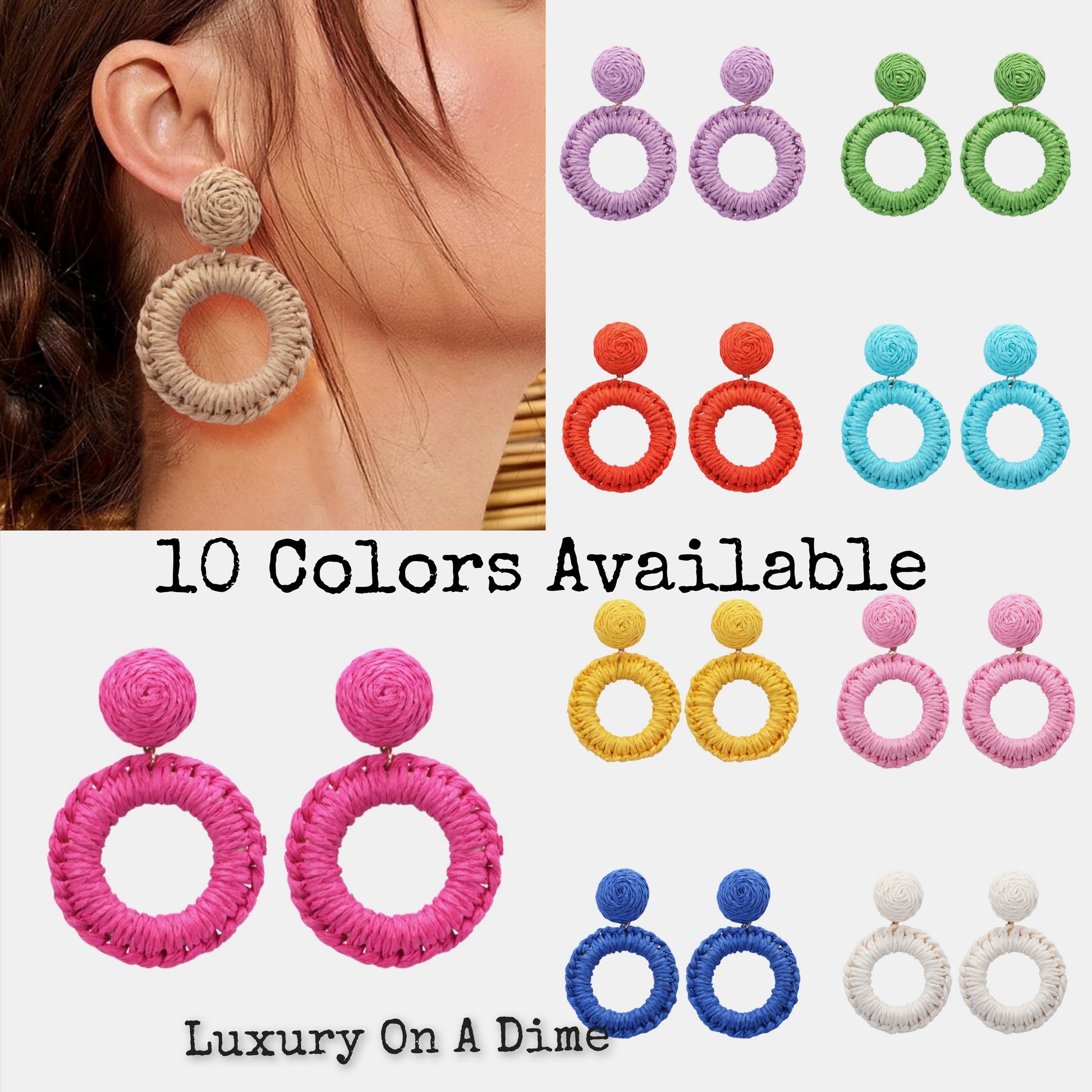 Bold Raffia Grass Round Dangle Earrings Jewelry (10 colors Available)