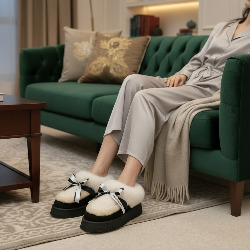 Soft, plush, and irresistibly aesthetic, these faux suede faux fur platform bow slipper boots embody the essence of soft girl, coquette, vanillacore, and cozycore fashion. Designed for comfort and cuteness, they feature a fluffy faux fur trim with a satin ribbon bow detail that adds a dreamy, feminine charm. The platform sole gives subtle height while maintaining cloud-like comfort, making them perfect for lounging or casual indoor or outdoor wear. These shoes blend princesscore elegance with kawaii cozy vibes, reflecting a perfect mix of romantic minimalism and cute maximalism. The soft texture and delicate detailing make them ideal for creating an effortlessly comfort-glam look that feels as good as it looks. Radiating winter cottagecore warmth and girly loungewear energy, they transform every moment into a touch of soft luxury.