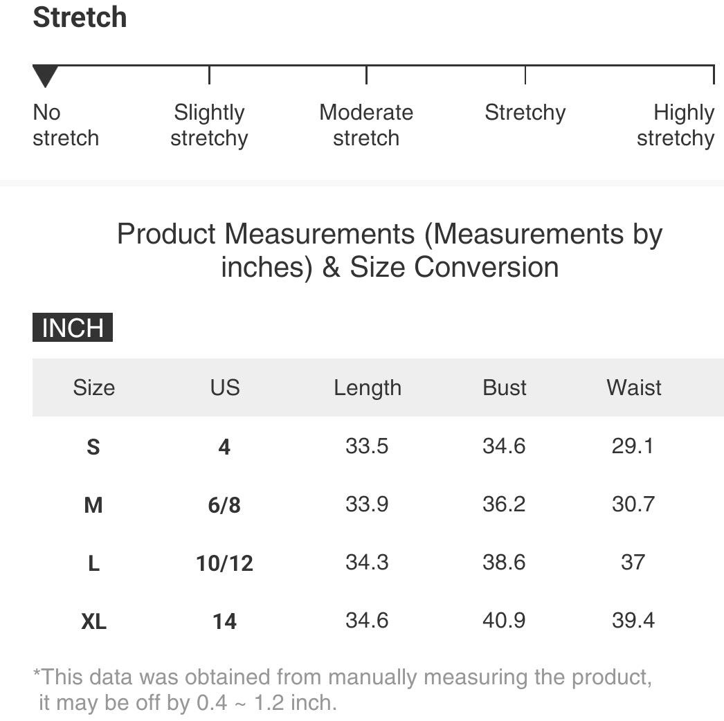 | Size | US | Length | Bust | Waist | |