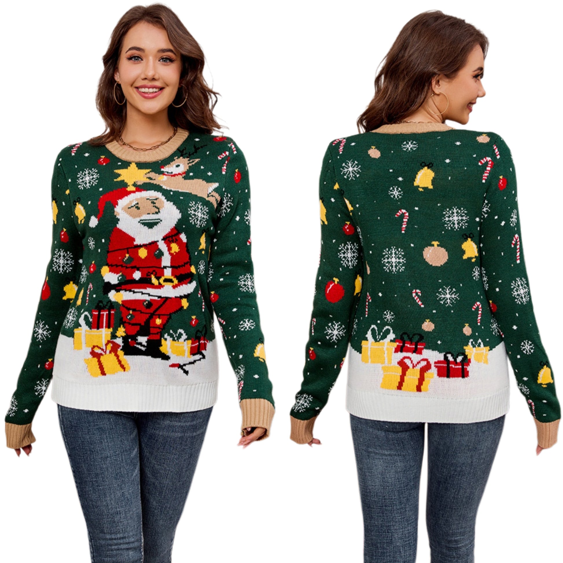 Santa Claus Reindeer Knit Holiday Pullover Top Christmas Sweater Long Sleeve Shirt