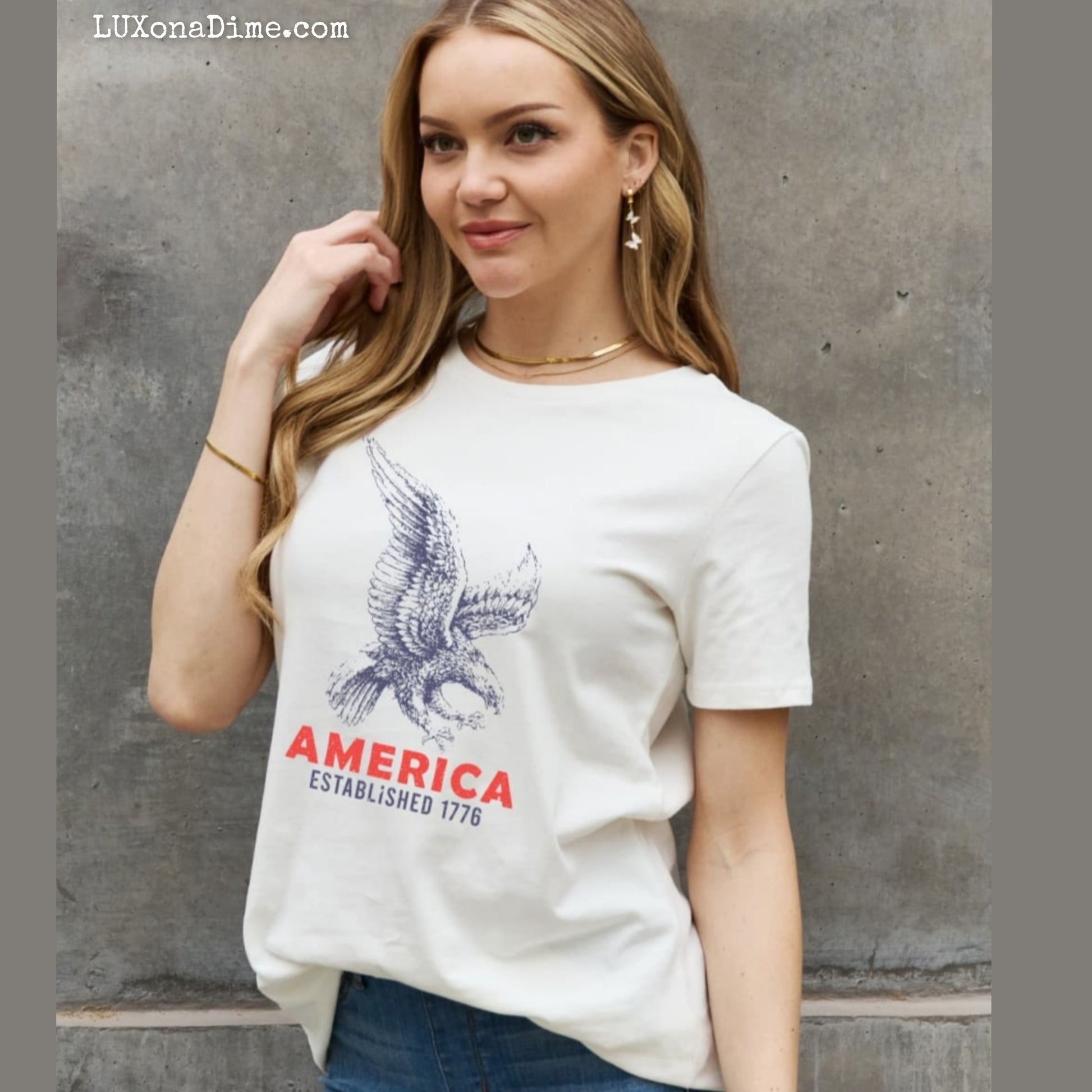 AMERICA ESTABLISHED 1776 Eagle Patriotic USA Graphic 100% Cotton Short-sleeve T-Shirt