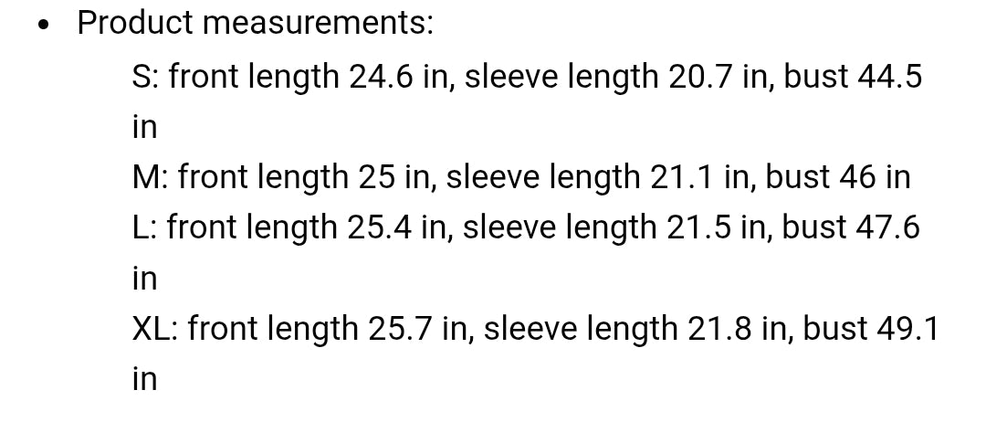 Sleeve length 21.1 in