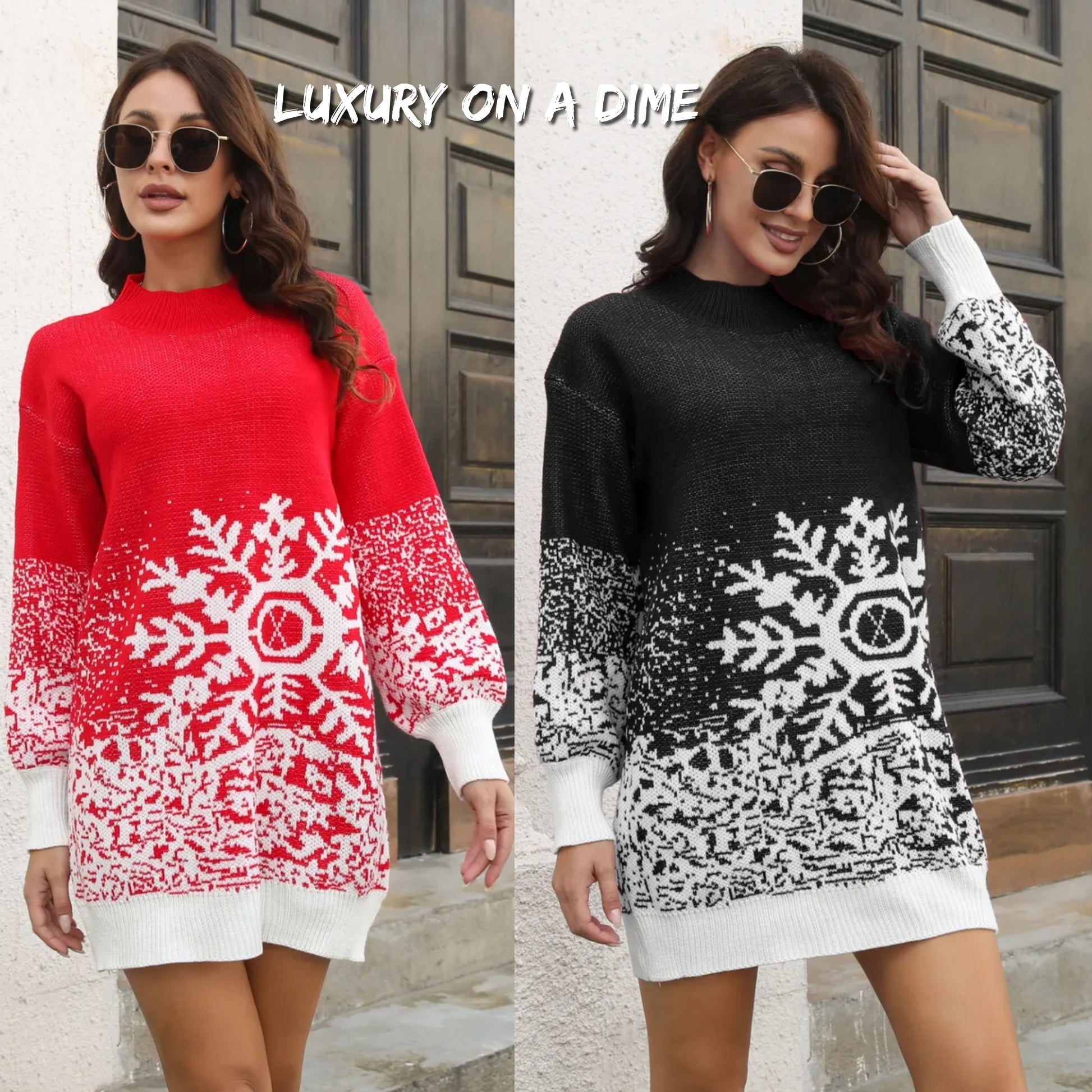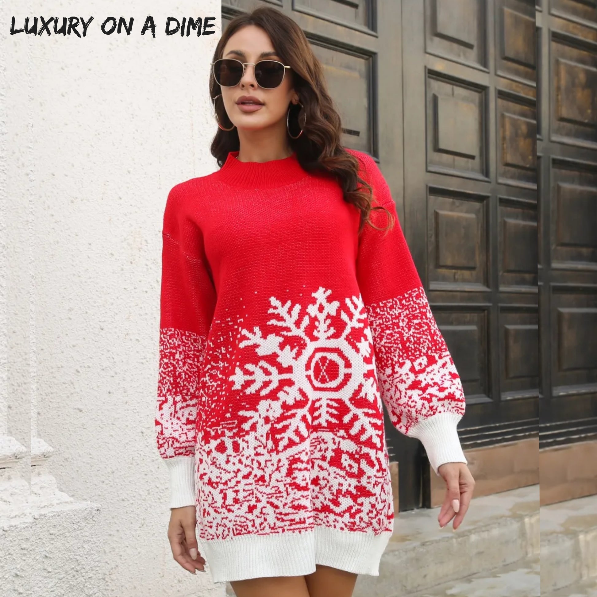 This knit sweater dress offers a classic festive print that can be worn long after the Christmas holiday.