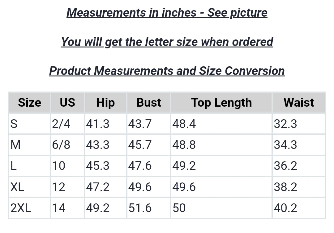 | Size | US | Hip | Bust | Top Length | Waist |