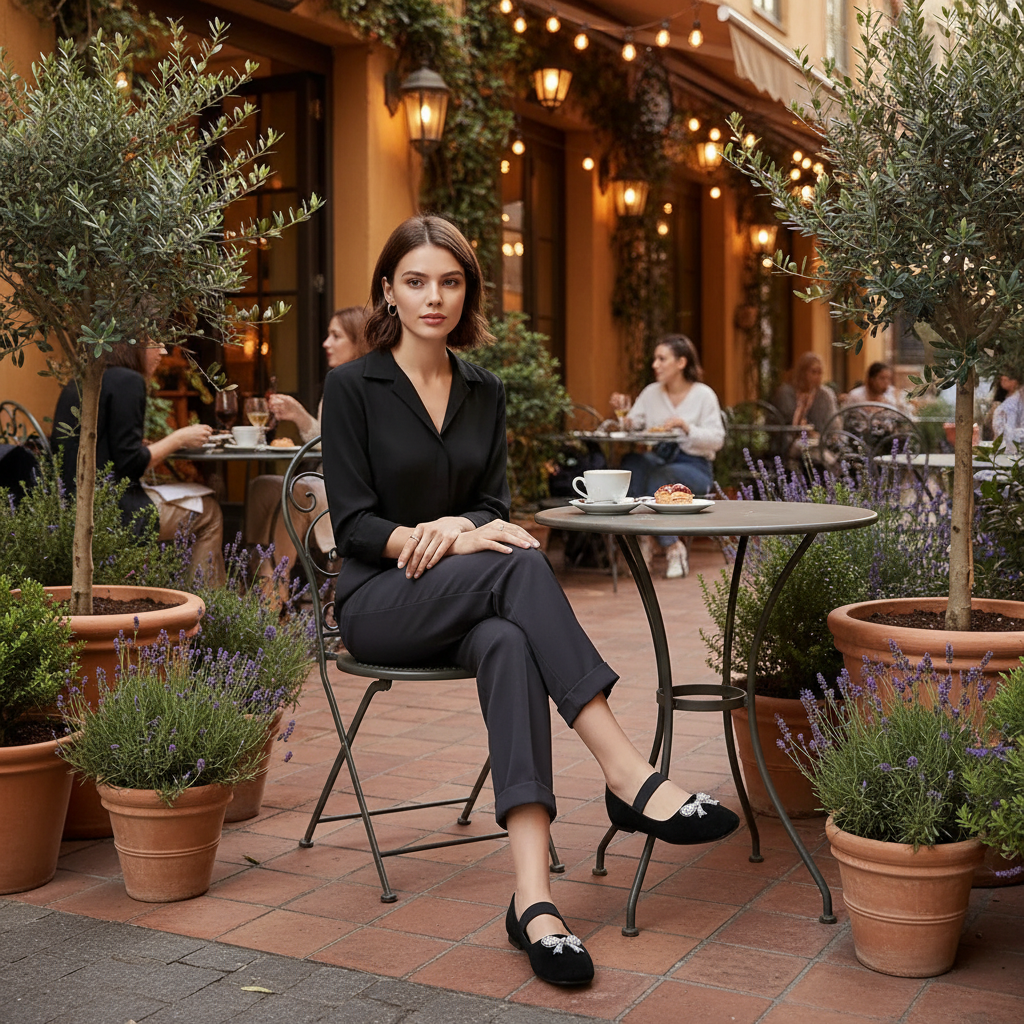 Designed with a soft square toe and classic Mary Jane strap, these slip-on flats combine delicate embellishment with easy everyday wear. The rhinestone and faux pearl bow adds a touch of sparkle that channels coquette sweetness, balletcore charm, and girly glam appeal. The matte vegan upper creates a balanced contrast that suits both casual and dressy looks. Made with an elastic strap that offers secure comfort, making these shoes ideal for daily movement and effortless styling. Blending influences of soft girl aesthetics, romantic minimalism, kawaii-inspired details, and modern feminine simplicity, these flats pair naturally with quiet luxury basics, polished casual outfits, and playful statement pieces. Their lightweight feel and subtly adorned design create a versatile accessory that fits cottagecore softness, elegant chic, and understated glamour, appealing to those who love dreamy yet practical footwear with personality.