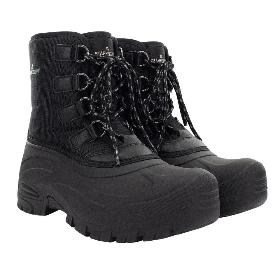 Staheekum Mens Winter Snow Boots Waterproof Insulated Outdoor Faux Fur Black