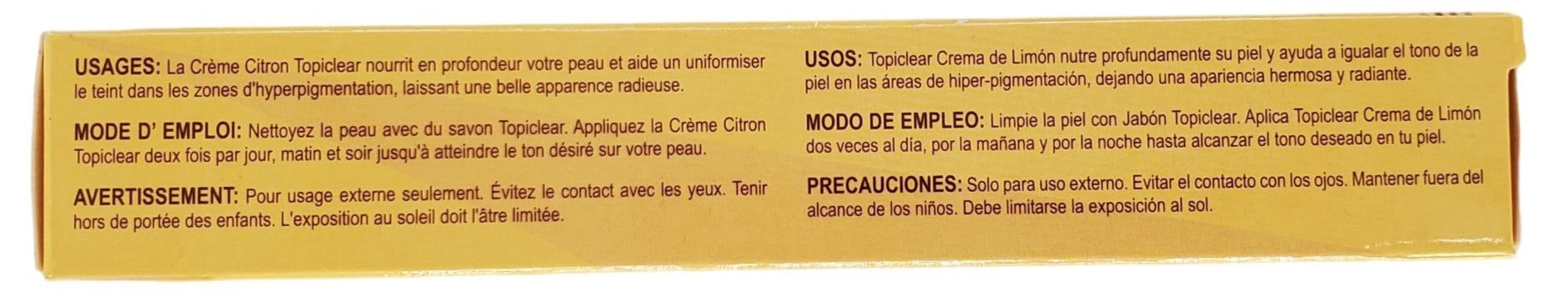 Achieve a luminous complexion with Topiclear Skin Tone Lemon Cream 1.76oz (50g). This cream is specially formulated to fade dark blemishes, including sun spots, acne scars, and age spots, revealing a more even skin tone over time. Topiclear Lemon cream is used to deeply nourish your skin and help to even out skin tone in areas of hyperpigmentation, leaving a beautiful, radiant appearance. Can be applied twice daily, at morning and night until reach the desired tone on your skin.
