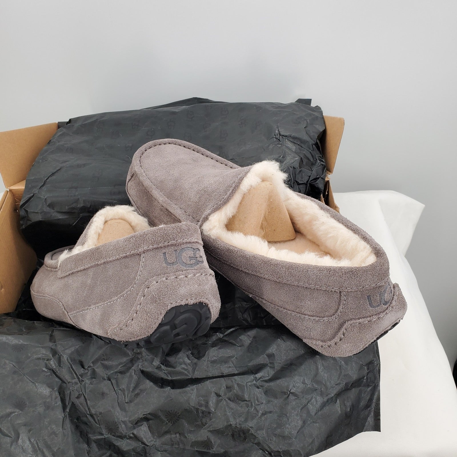 UGG Slippers Men’s Ascot Grey Suede Shearling Fur House Casual Shoes Luxury
