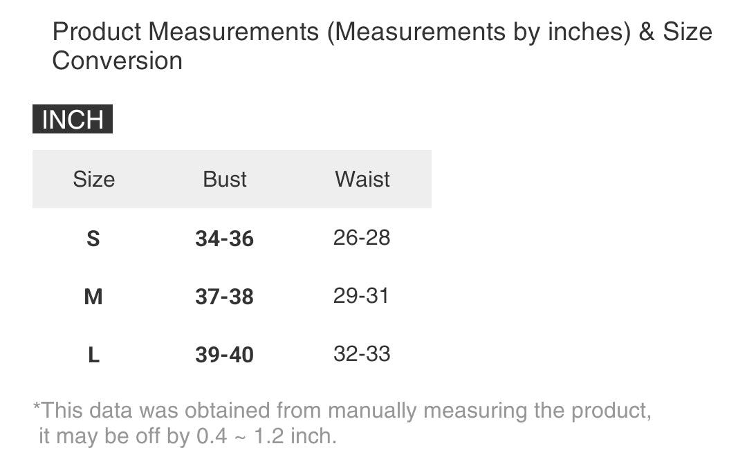 | Size | Bust | Waist |