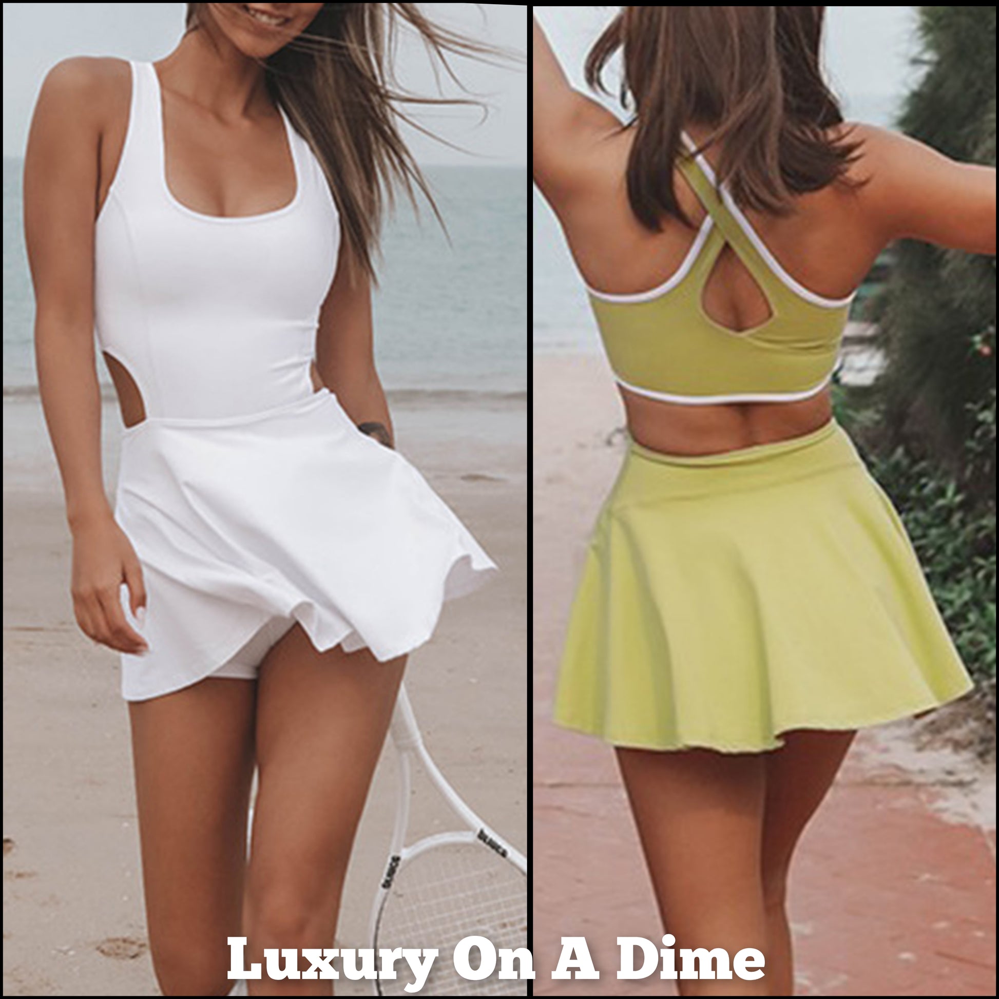 Perfect athletic onepiece outfit for Tennis, Pickleball, Golf or any indoor / outdoor sports event.